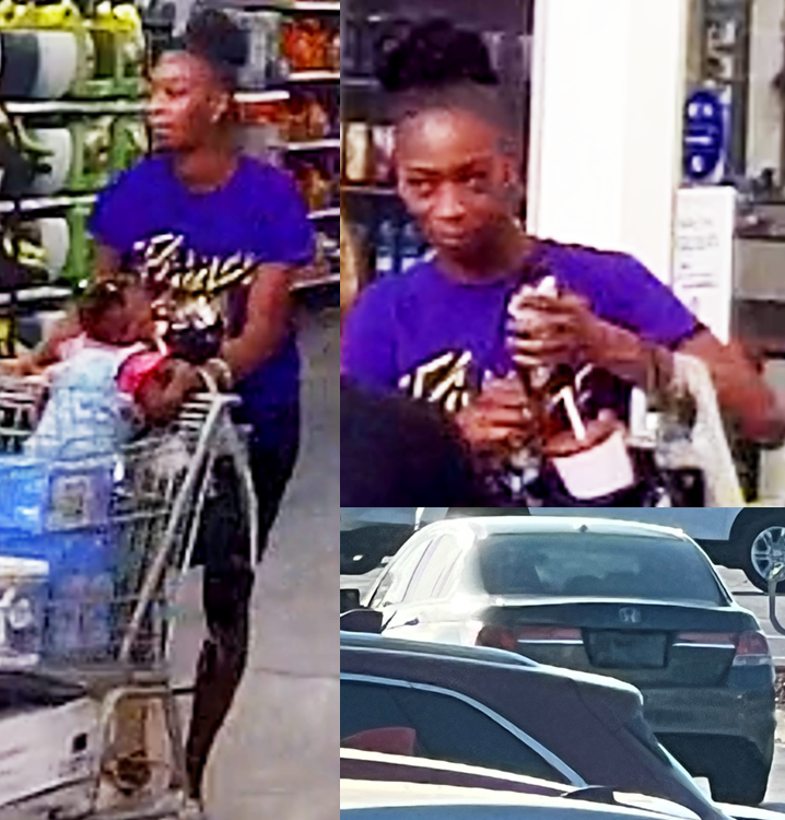 On March 7th at about 4:53 pm, this woman entered the Mulberry Walmart with three children and began to pull merchandise from the shelves. She then took the merchandise to Customer Service and tried to return the items for cash.